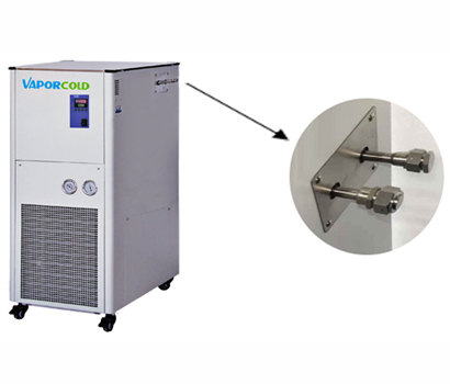 VaporCold PGC(Portable Gas Chiller)气体冷却设备,插电即可运行。 PGC气体冷却设备,无需预冷,无需其它辅件或耗材,即可将连续输入的干燥气体(例如氮气、氩气或空气)从环境温度冷却降温,输出低温或超低温气体。